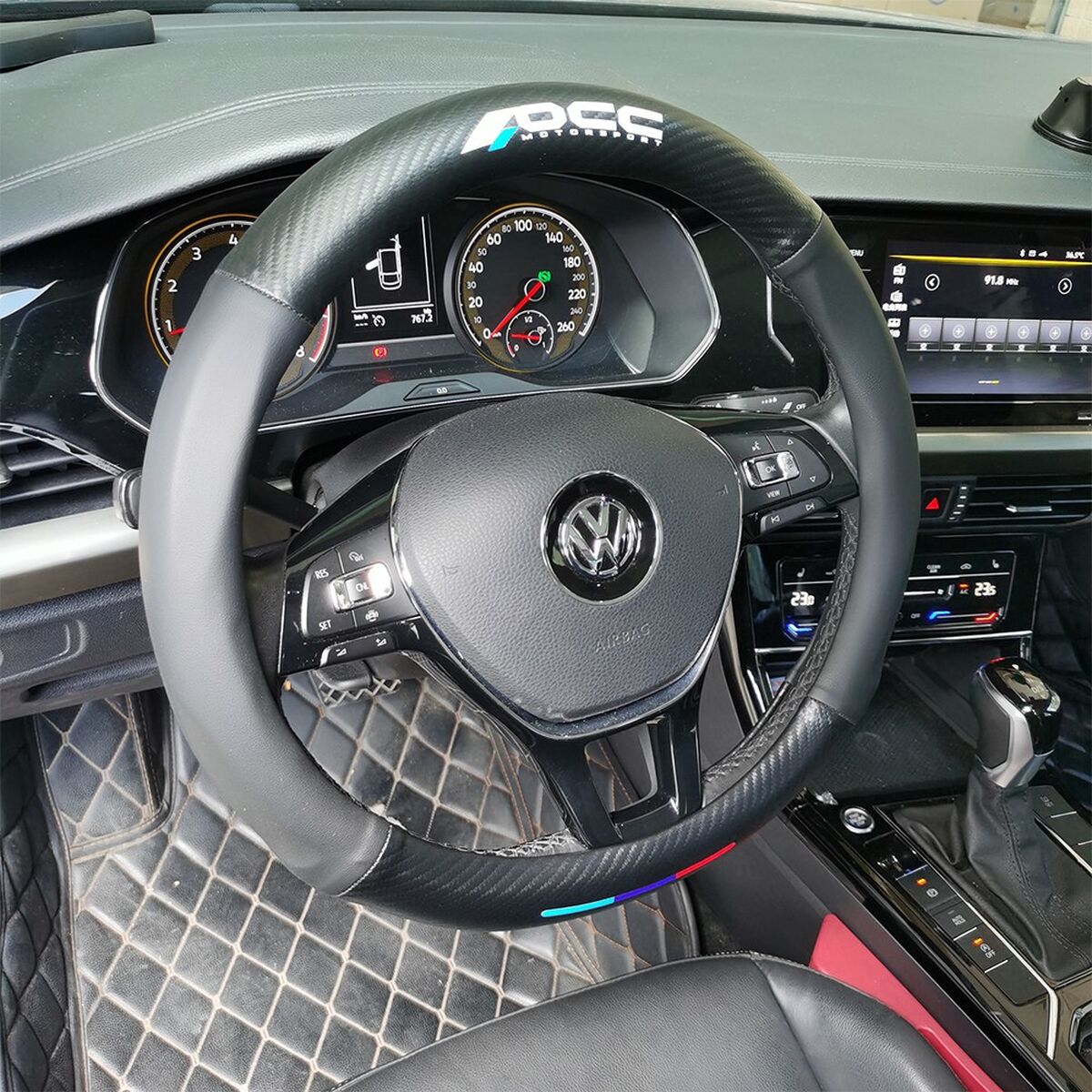 Die Lenkradhülle OCCFV0050 der Marke OCC Motorsport ist ein Zubehör, das Komfort und Griff beim Fahren verbessert und dank ihres ungefähr 38 cm Durchmessers mit etwa 98 % der Automodelle kompatibel ist. Hergestellt aus einer Kombination von Rindswildleder außen und einem Innenring aus ökologischem Gummi bietet diese Hülle eine abriebfeste und angenehme Oberfläche. Das Finish kombiniert eine schwarze Kohlefaserstruktur, die einen sportlichen und eleganten Stil verleiht, mit rutschfesten Eigenschaften, die besonders bei Schweiß für mehr Sicherheit und Kontrolle sorgen. Zudem ist sie ultradünn und saugfähig, was eine natürliche und komfortable Handhabung während der Fahrt ermöglicht. Die Montage ist einfach und manuell, wodurch die Hülle fest sitzt, ohne zusätzliches Werkzeug zu benötigen. Mit einem Gewicht von 600 Gramm sorgt sie für eine spürbare Präsenz, ohne die Lenkradführung zu beeinträchtigen. Das sportliche Design steht nicht nur für eine ansprechende Optik, sondern auch für Funktionalität, Komfort und Langlebigkeit im Alltag. Insgesamt stellt diese hochwertige Lenkradhülle eine praktische und technische Lösung dar, um das Lenkrad des Fahrzeugs zu erneuern oder zu schützen und bietet besseren Griff, Stil und Sicherheit.