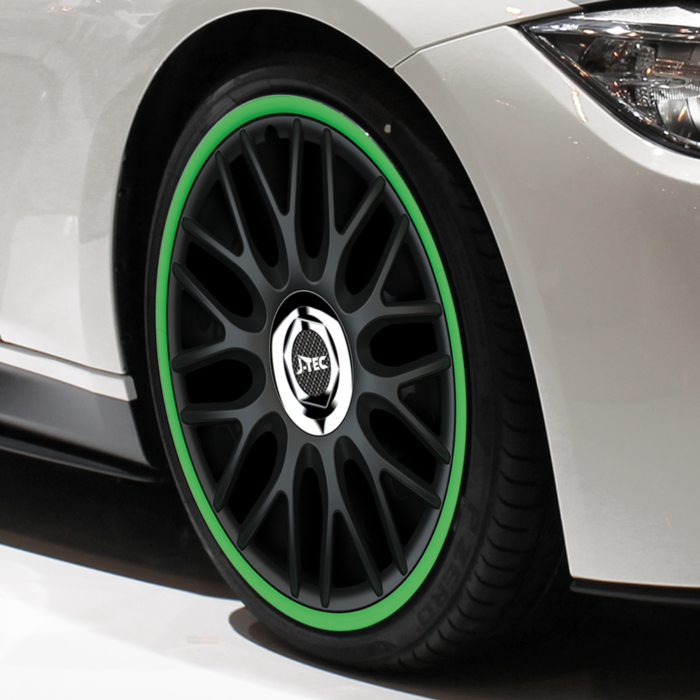 ORDEN SCHWARZ gepimpt mit grün ein COOLER Auftritt! Wir bieten Ihnen mit diesen Radkappen einen heißen Look die auf der Straße eine top Performance liefern. Das Modell zeigt sich in der Farbkombination schwarz/grün .