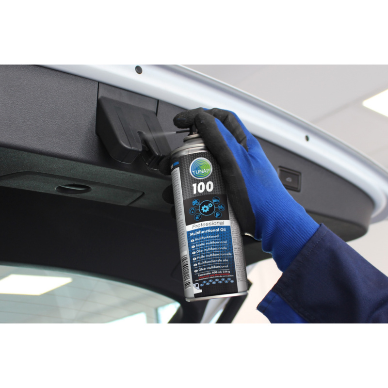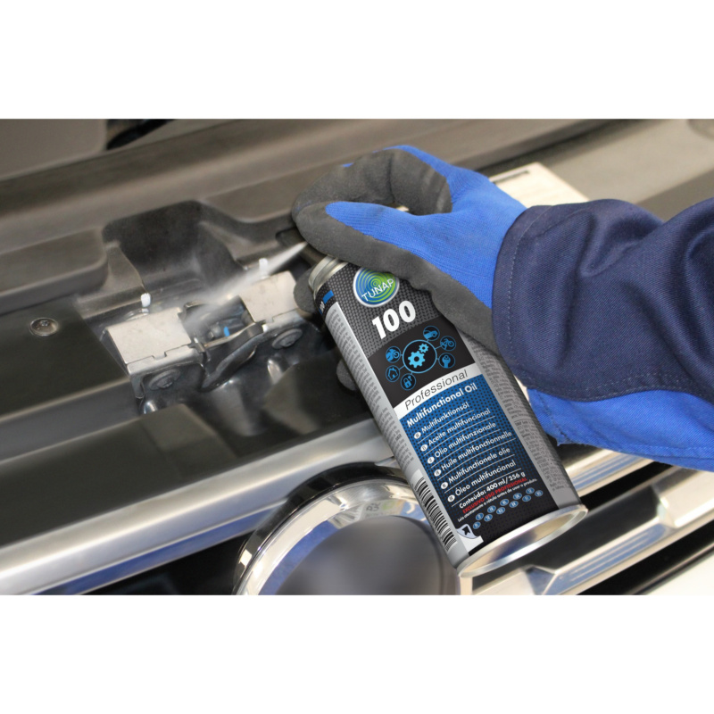 Universell einsetzbares Multifunktionsöl für fünf Anwendungsbereiche: Schmierstoff-, Röstlöser-, Reiniger-, Korrosionsschutz- und Kontaktspray.