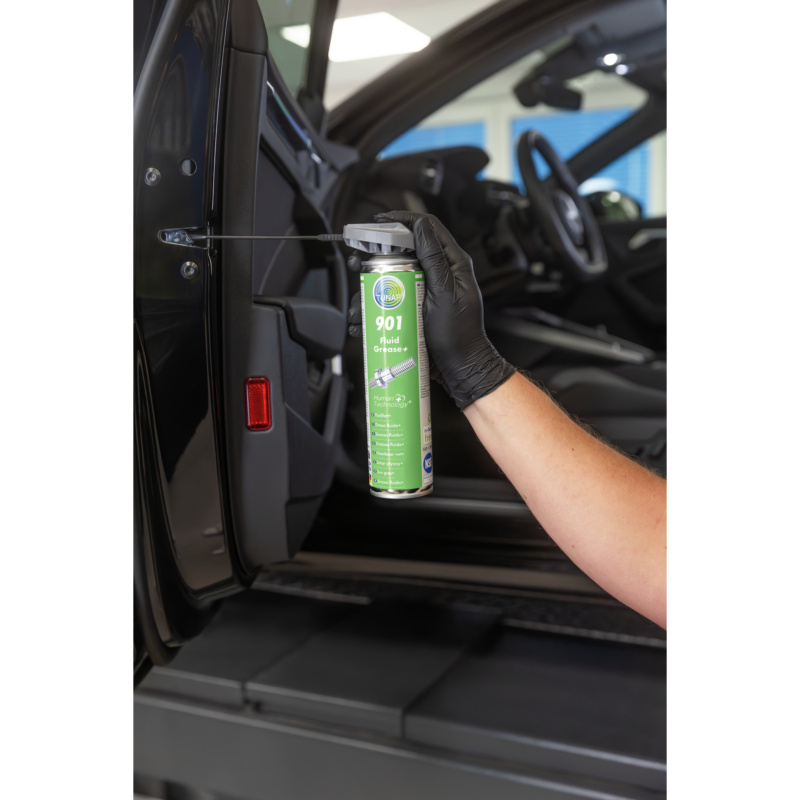 • Langzeitschmierung für sämtliche bewegten Bauteile (z. B. Linearführungen, Spindeltriebe, Türfangbänder, Sitzschienen, Gelenke, Scharniere, Schiebeteile, Bolzen, Schließkeile, Schließzylinder, Schlösser, Gestänge usw.)